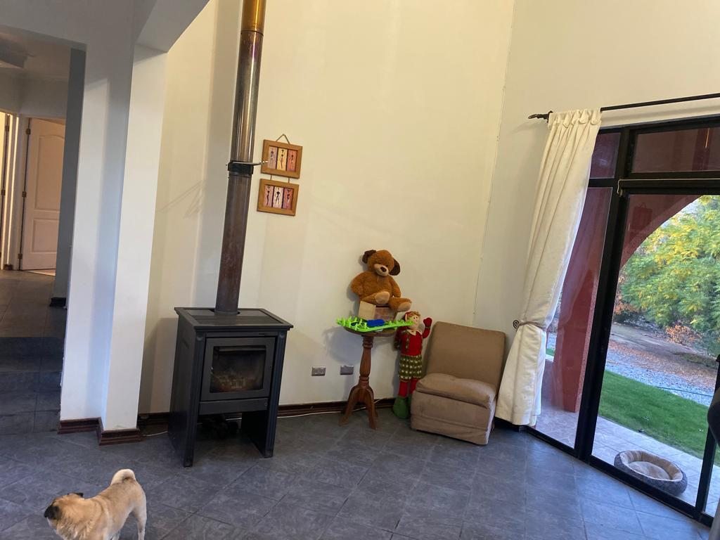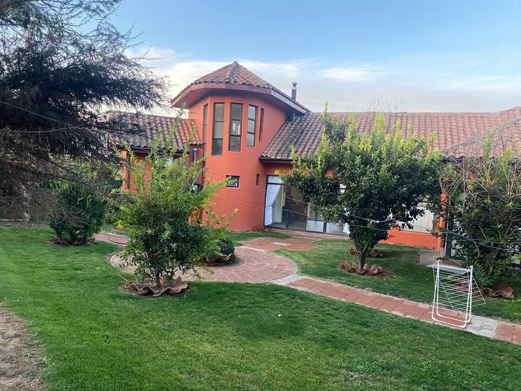 Casa de 300 M2 construidos emplazada en terreno de 5000 M2 con diseño arquitectónico que se desglosa en hall de acceso, amplia cocina amoblada y equipada, living, comedor, 5 dormitorios con closet, 4 baños, salas de estar, altillo multiuso, logia, terraza y quincho interior y exterior. Calefacción mediante bosca a leña. Incluye aire acondicionado.